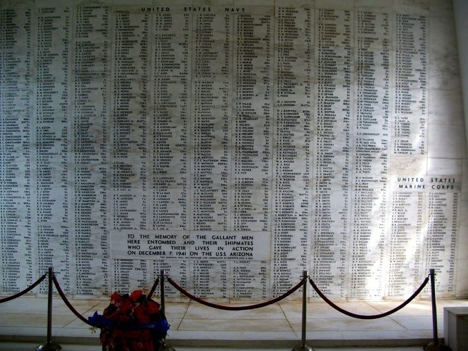 I walked through the narrow memorial, and was drawn to the back where the names of the men who gave their lives are inscribed on hard stone. It’s so easy to look at a few names and see them as nothing more than a statistic, a historical fact that belongs in a text book. Maybe it’s the link to my grandfathers, I’m not sure, but instead of names I saw faces, families, and laughter caught short. I saw the names as people and not etchings, as heartbeats that were so horrifically and casually snuffed out. I looked up and caught sight of the American flag flying over the memorial and all the emotions coalesced into feelings of pride and sorrow, relief and despair. I cried quietly off to the side while others took photos and bowed their heads in silent prayer. As quickly as the moment came, it passed, and soon we were back on the boat returning to shore away from the ghosts of war and back to the warm embrace of leis and palm trees.